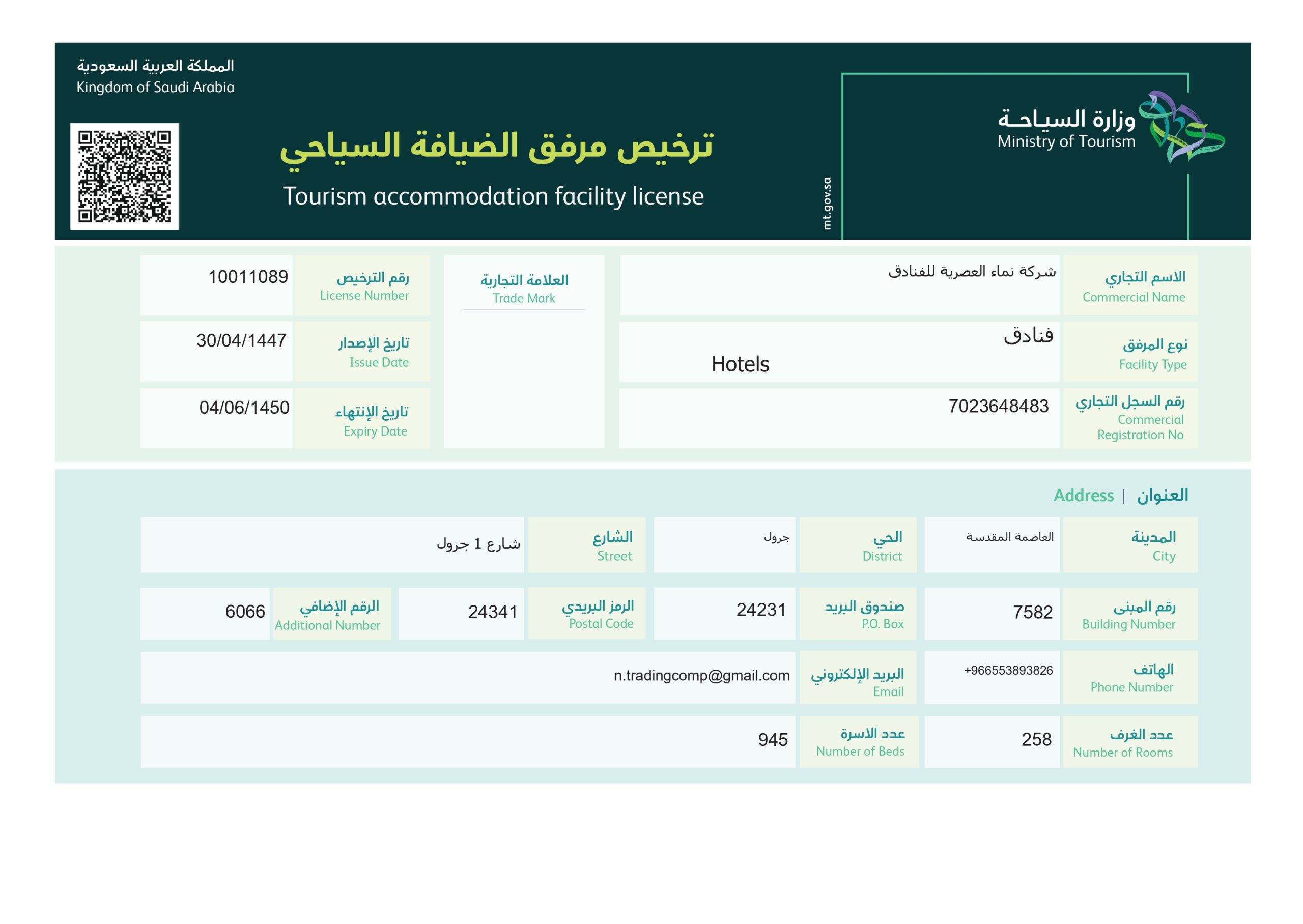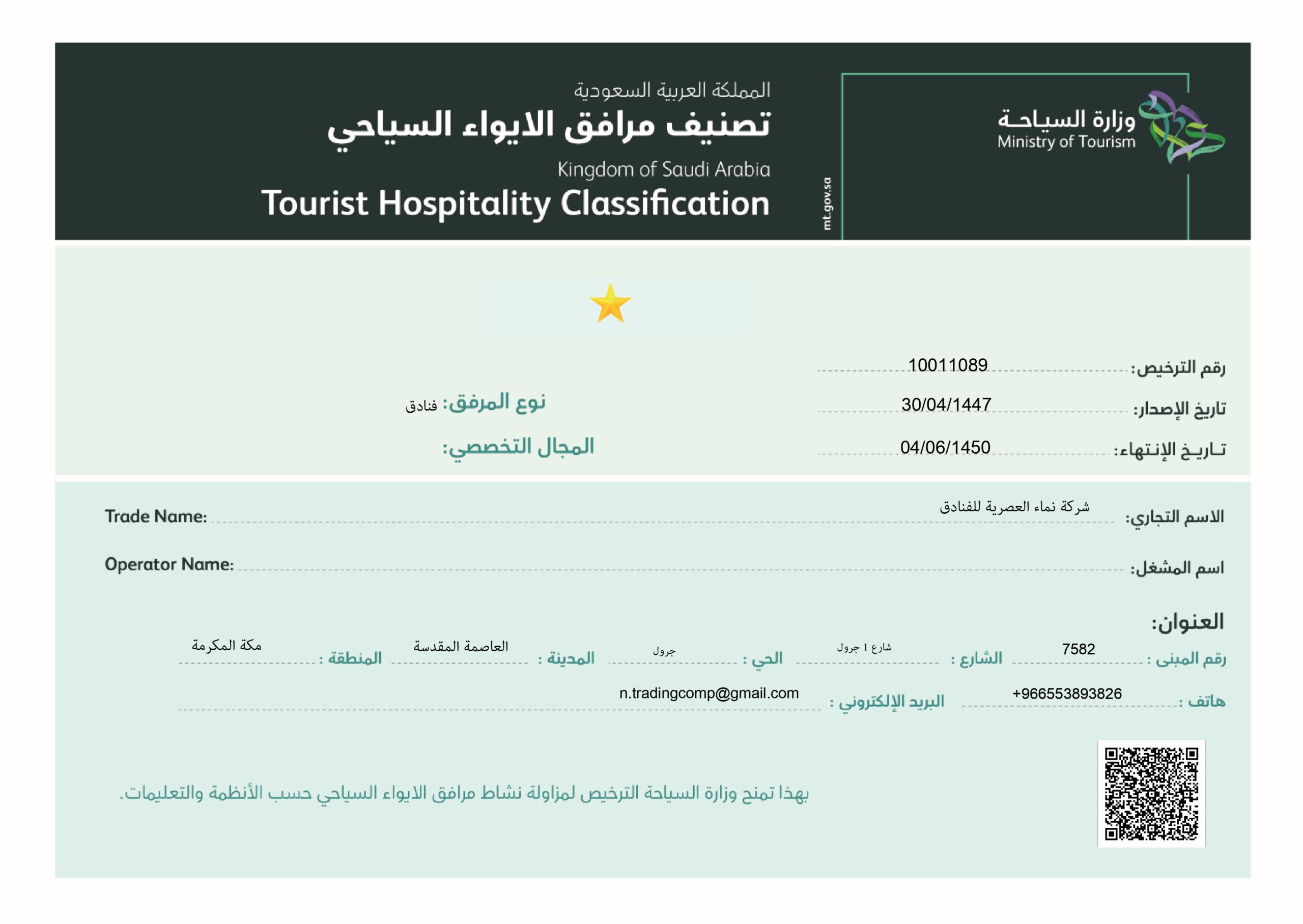 Tourism accommodation facility license